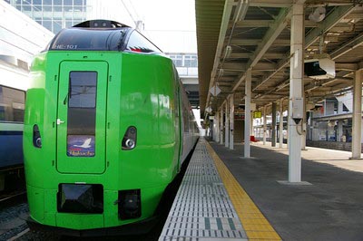 函館行き 『特急スーパー白鳥95号』。 車両は、JR北海道789系特急形交流電車(青函トンネル走行対応車両)。 青森駅を経由し、運行系統である『津軽海峡線』を走行する。(2008年8月現在) ※東京-新青森間の東北新幹線全通により、2012年8月現在で 津軽海峡線の運転上の始発駅は新青森駅になっている。 |