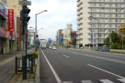 | 高架下を横切る四条通(国道39号線)にて旭川駅方面(西側)を見る。 | |||||||||||||||||||||||||||||||||||||||||||||||
