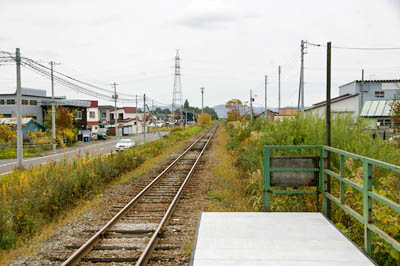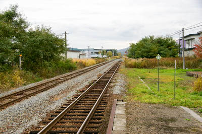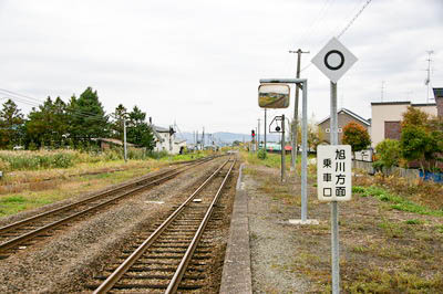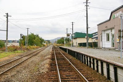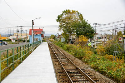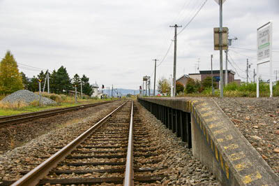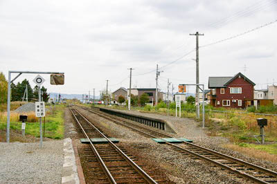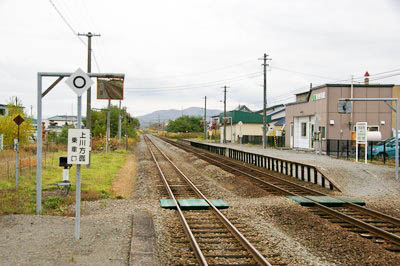 | 構内東側の「2番道路踏切」より、駅全景と上り旭川方面を見る。 | |||||||||||||||||||||||||||||||||||||||||||||