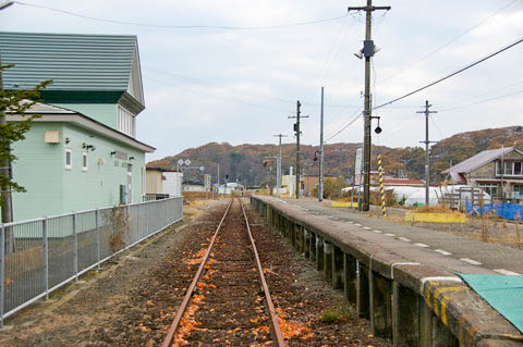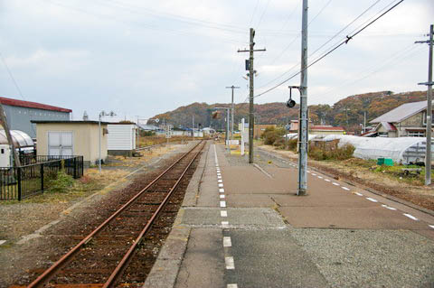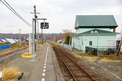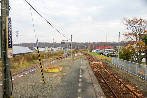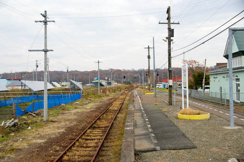 | ホーム東端(豊郷寄り)の構内踏切から、上り鵡川・苫小牧方面を見る。 | ||||||||||||||||||||||||||||||||||||||||||||||||||||||||||||||||||