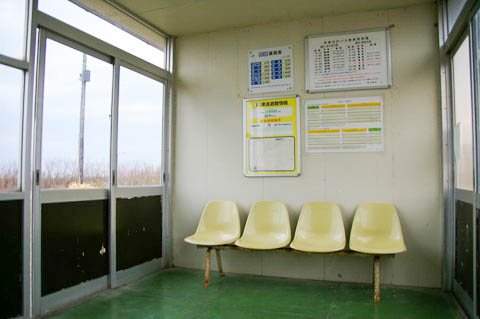 | 待合室内の様子。 4連ベンチがあるのみ。 |
