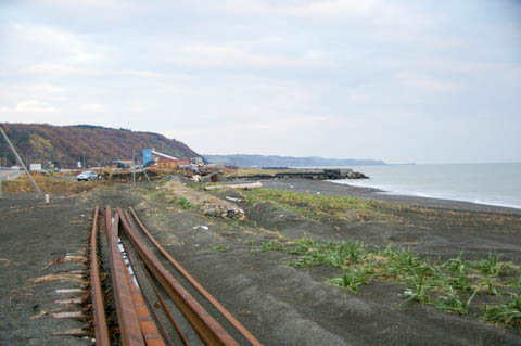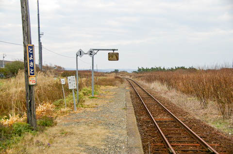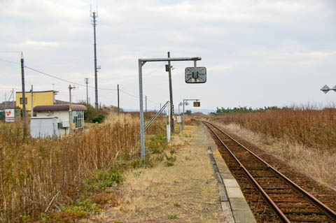 | ホーム中程より、上り鵡川・苫小牧方面を見る。 左手(南側)は250m程で太平洋である。 |