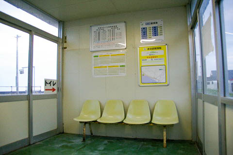 | 待合室内の様子。 4連ベンチがあるのみ。 |