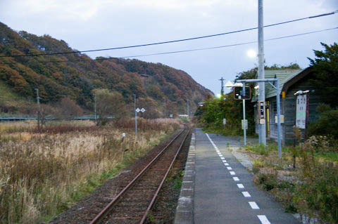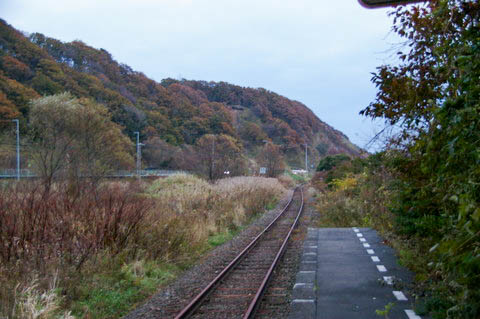 | ホーム東端(大狩部寄り)の線路脇から、上り鵡川・苫小牧方面を見る。 | ||||||||||||||||||||||||||||||||||||||||||||||||||||||||||||||||||