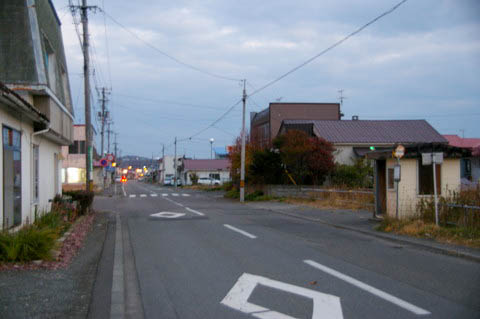 | 駅前を通る北海道道208号比宇厚賀停車場線にて、鵡川方面を見る。 列車代行バスのバス停は、横断歩道先にある。 また、路線バスの下り 『厚賀駅前バス停』 は撮影立ち位置後方にある。 駅は道路先の横断歩道を右。 |