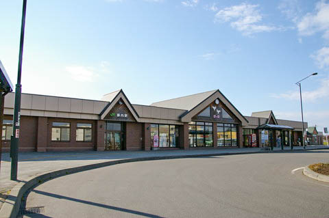 | 駅前のメインストリートは北海道道992号静内停車場線で、500m程で国道235号線に出る。 国道235号線沿いには商店街や大型スーパー、ホームセンターなどがある。 |