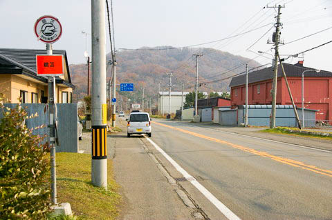 【鵜苫駅】 上り方面停留所前より、 西側(静内方面)を見る。 駅は写真右手奥。 尚、列車代行バスの【鵜苫駅】上り停留所は、従来からある 『JR北海道バス』 の 【鵜苫】 停留所に併設となっている。 |