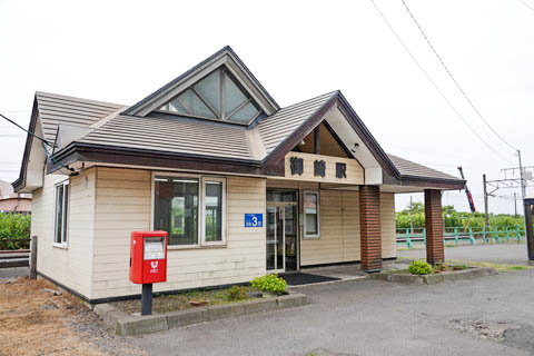 駅舎。 1986年(昭和61年)に無人駅化された後の 1989年(平成元年)改築とのこと。 出入口左側の窓がある部分が待合スペースになっている。 |