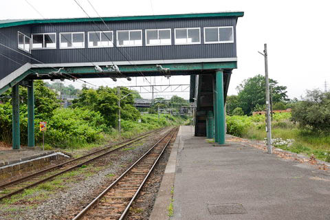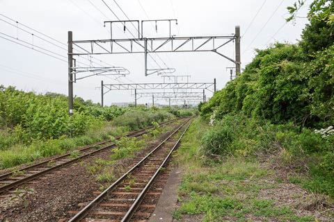 | 旧3番線の路盤と駅西側の旧構内の様子。 | ||||||||||||||||||||||||||||||||||||||||||||||||||||||||||||||||||
