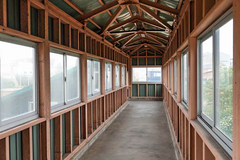 | 構内跨線橋通路。 大きな窓が多くあり、たいへん明るい。 |