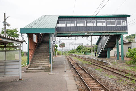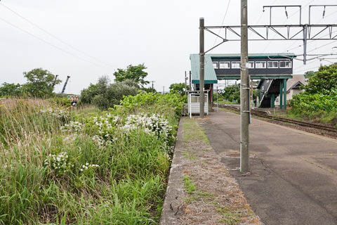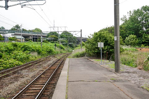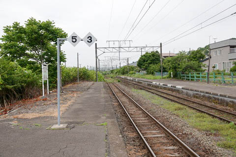 | 下り(駅舎対面側)ホーム中程より、上り室蘭方面を見る。 | ||||||||||||||||||||||||||||||||||||||||||||||||||||||||||||||||||