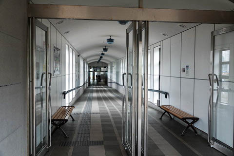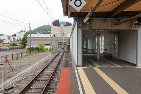 | 改札口よりホームへの通路を見る。 頭端式ホームであり階段の設置は無く、ホーム高さ分の傾斜がついている。 |