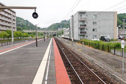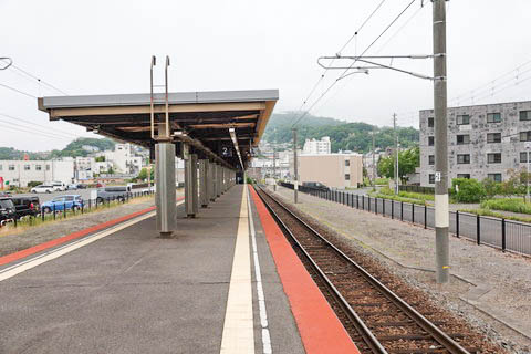 ホーム西端の出入口扉前より、下り東室蘭方面を見る。 | |||||||||||||||||||||||||||||||||||||||||||||||||||||||||||||||||