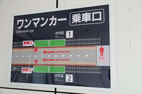 | ホーム側の出入口扉前より、改札口方向を見る。 | ホーム側出入口扉付近に掲示されている 『乗車口案内』。 | |||||||||||||||||||||||||||||||||||||||||||||||||||||||||||||||||