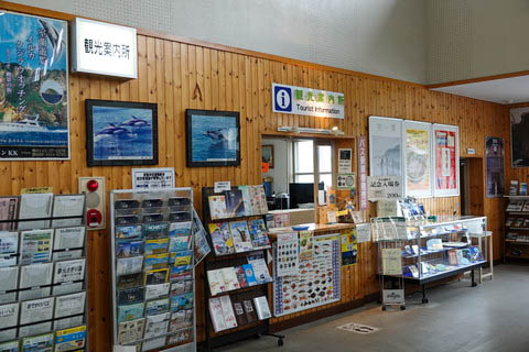 | 旧駅舎内の観光案内所。 パンフレットがたくさん置かれている。 窓口では 『旧室蘭駅舎 記念入場券』 などが販売されている。(旧駅舎内は入場無料) |