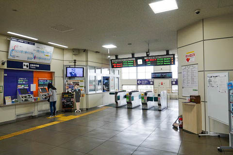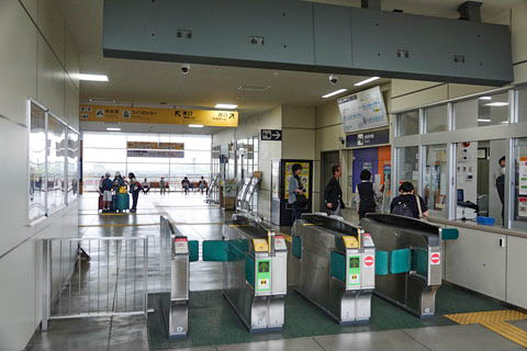 | 構内コンコースにて改札口を見る。 自動精算機の設置はなく、運賃精算は窓口対応となっている。 |