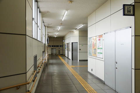 『わたれーる』 より、駅舎のコンコースを見る。 駅舎部分は旧来からの位置関係のようだが、2007年(平成19年)の 『わたれーる』 開通後、2008年(平成20年)に改装されたとのこと。 突き当たりが改札口である。 |