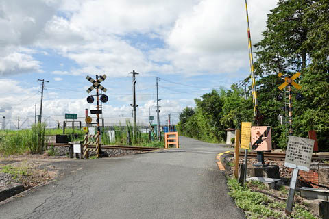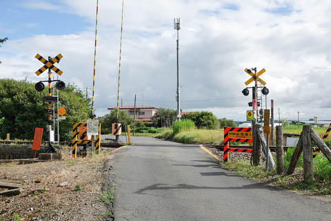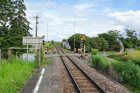 にて北側を見る。 300m程で国道108号線に出る。 踏切左側にホームが見える。 |
