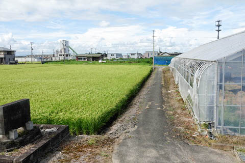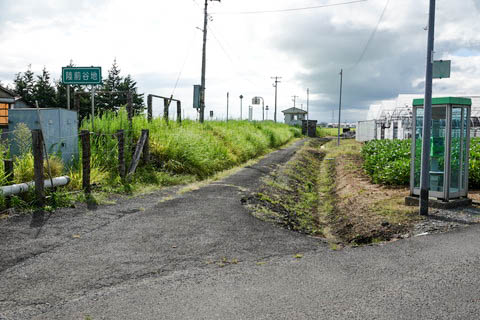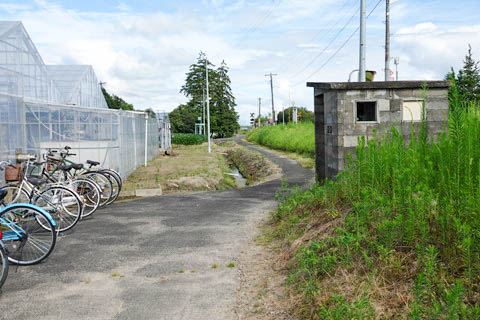 脇から駅舎方向を見る。 こちらも畦道を舗装したような小径である。 |