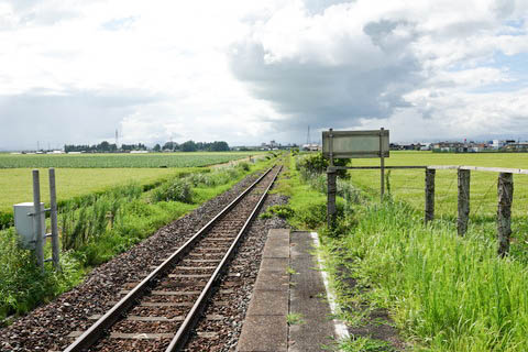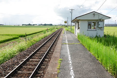 | ホーム西端(古川寄り)から、下り鳴子温泉、新庄方面を見る。 見事な田園風景が広がっている。 |