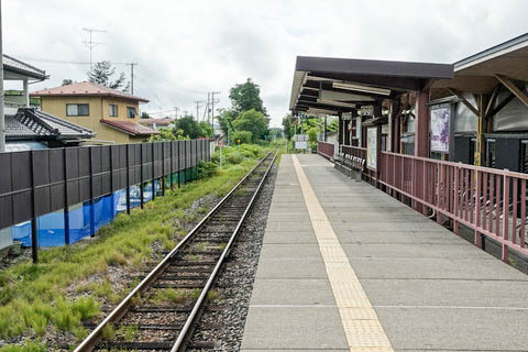 | ホーム東端(岩出山寄り)から、上り古川・小牛田方面を見る。 | ||||||||||||||||||||||||||||||||||||||||||||||||||||||||||||||||||