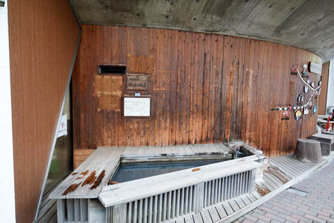 ”ぽっぽの足湯”。 奥(写真右端)にもうひとつ浴槽がある。 列車待ちなど、観光客の利用が多いようだ。 |