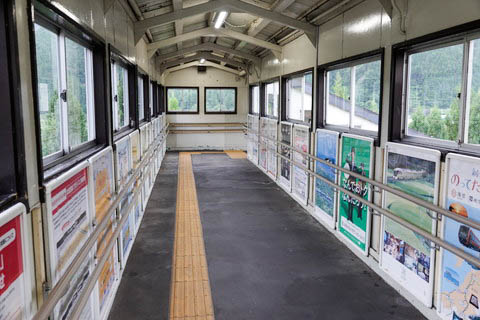 | 構内跨線橋通路。 多くのポスターが掲示され、有人駅らしさを感じる。 |