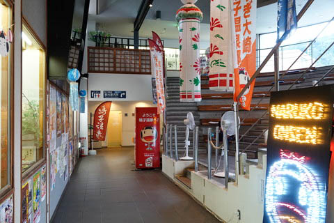 | 駅出入口を入って右手のコンコース。 この部分は円形劇場 『ギャラリーシアター』 となっている。 左壁面にスクリーン、右手が観覧席(待合所を兼ねる)となっている。 また正面に飲料の自販機とトイレ、観光案内所がある。 |