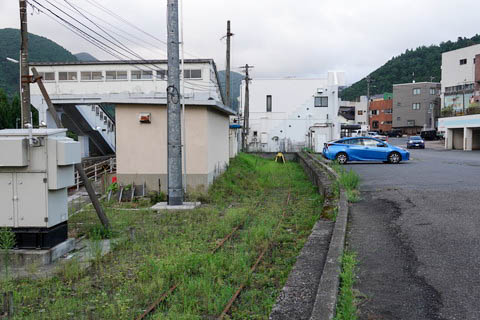 | 旧貨物ホーム南端(中山平温泉寄り)から、下り新庄方面を見る。 | 旧貨物ホーム南端(中山平温泉寄り)から、線路終端(駅舎手前)方向を見る。 旧貨物ホームは 『鳴子温泉駅前駐車場』(有料)の一部として利用されている。 |