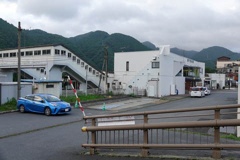 | 駅前の様子。 駅舎端付近から撮影立ち位置までは、『鳴子温泉駅前駐車場』(有料駐車場)となっている。 機械式の自動精算ではなく、有人受付方式である。 |