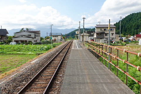 | ホーム南東端(赤倉温泉寄り)から、下り新庄方面を見る。 ホーム端は桁式のホームが増設されている。 |