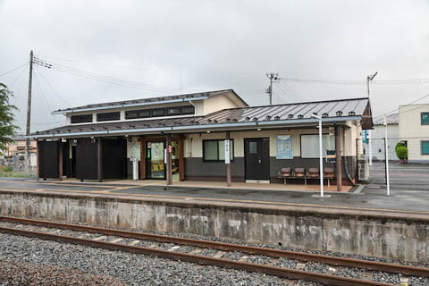 駅舎。 開業時からの老朽化した木造駅舎を 2013年(平成25年)3月に改築。 涌谷城下町の町屋をモチーフとした外観で、木造駅舎に見えるが鉄骨造とのこと。 |