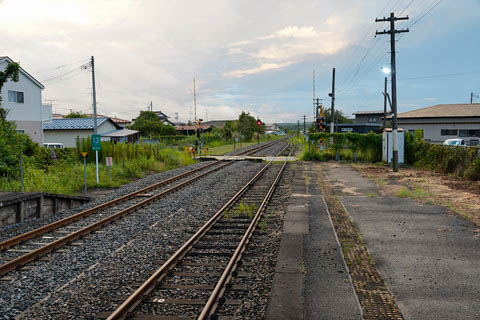 | 上り2番のりば西端付近(上涌谷寄り)から、上り小牛田方面を見る。 ホーム先1・2番線とも、上り出発信号機が設置されており、 右手の下り1番線にて小牛田方からの折り返しが可能となっている。 (訪問の時点で折り返し列車は設定されていない) |