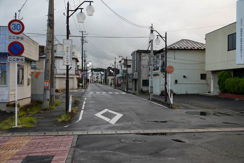 339.5m の宮城県道155号涌谷停車場線である。 商店や飲食店などが並んでいるが、既に閉業している店舗もある。 訪問の時間帯にもよると思うが、あまり賑やかさはないようだ。 |