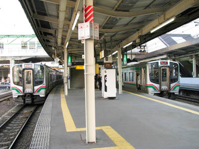 | @ | åŽRü8”Ô‚Ì‚è‚΂ɂĘHü‹N“_iI“_j•ûŒü‚ðŒ©‚éB wå‘äx ‚ð”ŽÔ‚·‚é—ñŽÔ‚Ì–ñ6Š„‚ª wˆ¤Žqx s‚«‚Å‚ ‚éB ®AåŽRü‚͈¤Žq‰w‚܂łªSuica‘Ήž‰w‚ƂȂÁ‚Ä‚¢‚éB |