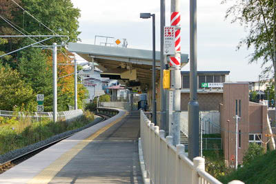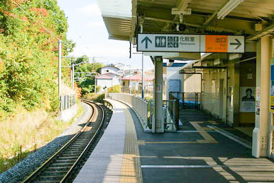 | @ | Žs“¹‰ˆ‚¢‚̃Rƒ“ƒrƒj‘O‚æ‚èA–k‘¤‚ðŒ©‚éB ‰w‚̃z[ƒ€‚ªŽs“¹‚ðŒ×‚¢‚ÅŒšÝ‚³‚ê‚Ä‚¢‚éB ‰wŽÉ‚Í“¹˜H‚Ì•à“¹‰EŽè‚ÌŠK’i‚ðオ‚Á‚½¶‘¤‚É‚ ‚éB ŽÊ^‰E‘¤‚ɉw‚ւ̃GƒŒƒx[ƒ^“ƒ‚ªŒ©‚¦‚éB |