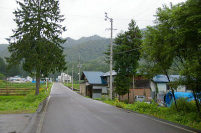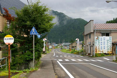 また、道路の200m程先右側の白い建物の少し先に、羽後交通桧木内線