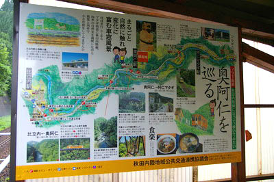 ホーム階段上部に掲示されている『奥阿仁巡りマップ』。
