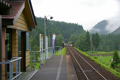 ホーム待合室前より、上り鷹巣・比立内方面を見る。