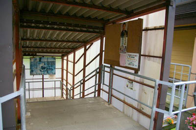 駅前からホームへの連絡階段がある。
