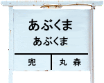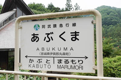 | 建植式駅名標。 駅名は 『阿武隈川』 に由来するようだ。 「阿武隈川が近く、阿武隈川ライン舟下りの乗船場が 設置されることになったため」 とのこと。 |