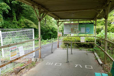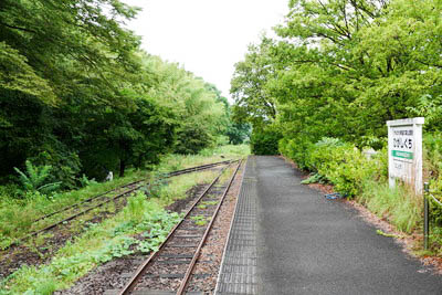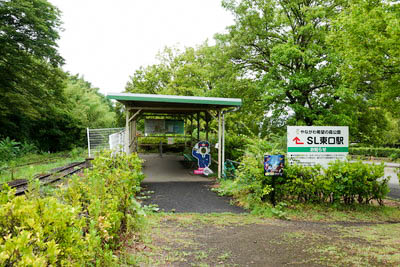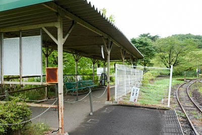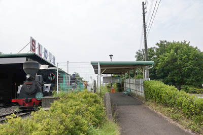西口駅。 駅出入口は市道に面している。 遊覧用列車の停車場であるが、装飾などは施されておらず 質素な佇まいである。 (訪問時は夏期運休期間中) |