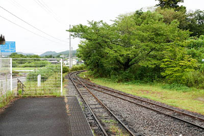 | ホーム西端(西口駅寄り)から、機廻し線の分岐と 西口駅方面を見る。 |