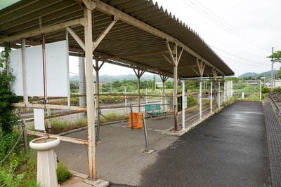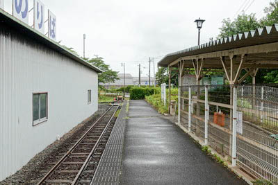 | 駅への通路より、ホーム側を見る。 駅舎は無く、通路に上屋があるのみ。 (2024年7月 再訪・撮影) |