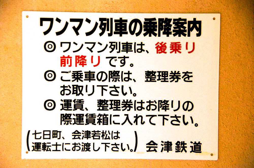 | ※1、会津線は西若松駅を路線起点とするが、すべての列車が只見線の会津若松駅へ乗り入れており、会津若松駅が運行上の起点となっている。 ※2、旧国鉄会津線(西若松駅−会津田島駅間)を承継した関係で、会津若松駅から南下する列車を下り、会津若松駅方面へ北上する列車が上りの 扱いである。 ※3、全線でICカードの利用は不可であり、現金のみの扱いとなっている。 また、会津田島駅を除き全駅において自動券売機の設置はない。 ※4、無人駅での乗車券購入・精算は、列車内での車掌対応となっている。(ワンマン車両では運転士対応) ※5、データ最終更新日 : 2025/11/03 |