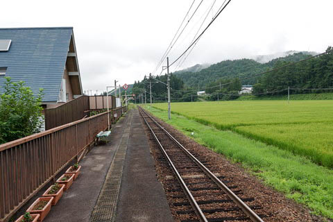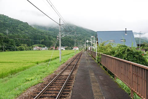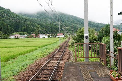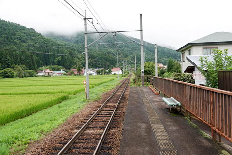 | ホーム北端(会津荒海寄り)から、上り会津田島・会津若松方面を見る。 | ||||||||||||||||||||||||||||||||||||||||||||||||||||||||||||||||||