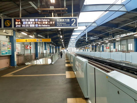 | 上り2番のりば南端(八潮寄り)から、上り秋葉原方面を見る。 | ||||||||||||||||||||||||||||||||||||||||||||||||||||||||||||||||||