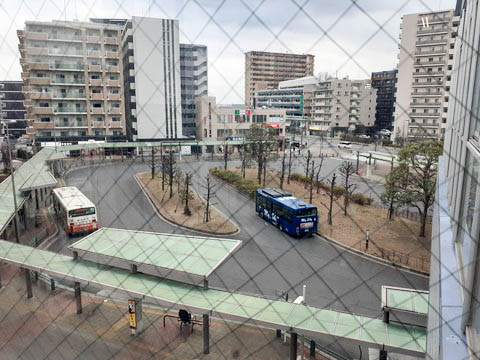 | 上り2番のりば南端(八潮寄り)から、東口ロータリーを俯瞰する。 | ||||||||||||||||||||||||||||||||||||||||||||||||||||||||||||||||||