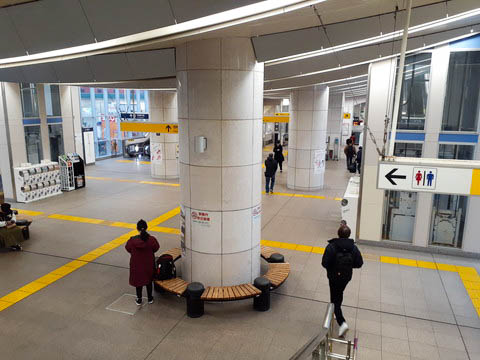 | 下り1番のりばへの階段より、構内(改札内)コンコースを見る。 | ||||||||||||||||||||||||||||||||||||||||||||||||||||||||||||||||||