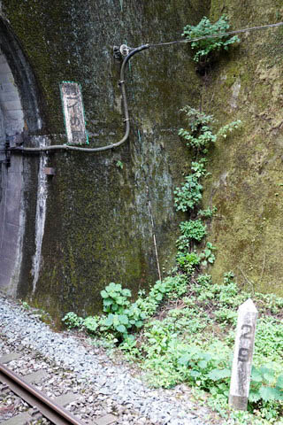 出口部を見る。 トンネル銘板は入口部にあるものと思われ、出口側には ”トンネル名称板”があるのみ。 (鉄道トンネルは、路線の起点側坑口を”入口”、終点側坑口を”出口”と称する) また、路線終点の会津高原尾瀬口からの29キロポストが立っている。 会津鬼怒川線は終点の会津高原尾瀬口に0キロポストがあり、 起点の新藤原に向かってキロ程が刻まれている。 |